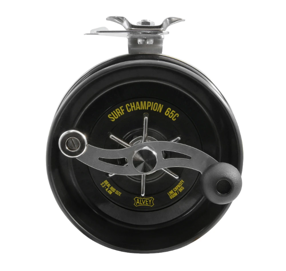The Alvey 65c Surf Champion is a perfect choice when it comes to catching big fish from off the beach or out of a boat, the reel will handle them with ease. The 65c Surf Champion comes with a full stainless back & the metal side cast system gives reliability and strength to handle heavy lines and large fighting fish. They have a super strong injection moulded fibre glass spool with a switch to engage multi-plate clutch with a metal star nut finishes the job. The multiple clutch is made up of polished brass plates and fibre friction washers which are oiled with Alvey Reel Oil to give a smooth strong clutch action. A fish alert switch on the back side of the reel can be engaged when leaving the rod and reel unattended to warn you of a fish taking line. The Alvey 65c Surf Champion has great cast distance and resistance to salt and sand make this one tough reel. A very versatile reel to handle a very wide range of fish on a large surf rod or mounted on a short stubby boat rod Ideal for Tailor, Salmon, Mackerel.