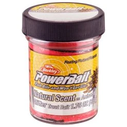 Berkley Powerbait Natural Scent Glitter Trout Bait is an easy to mould natural scented dough bait with glitter pieces and aniseed, scientifically formulated to be irresistible to trout. This no-mess bait comes conveniently in a resealable jar and has become one of the most successful baits for Trout all over the country.