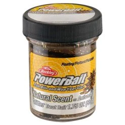 Berkley Powerbait Natural Scent Glitter Trout Bait is an easy to mould natural scented dough bait with glitter pieces and aniseed, scientifically formulated to be irresistible to trout. This no-mess bait comes conveniently in a resealable jar and has become one of the most successful baits for Trout all over the country.