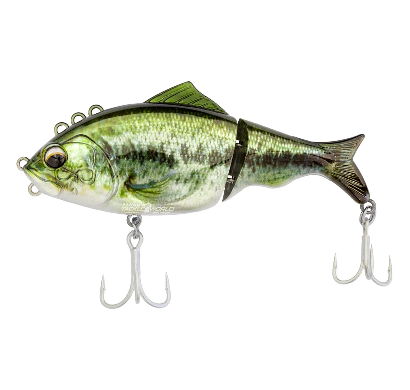 The Bone Focus 130 Lure is a jointed swimbait lure with 4 eyelets on it that create different actions and allow you to fish different depths, and they each have their unique swimming actions. The nose eyelet allows the lure to swim like a normal swimbait with a typical ‘S’ shaped retrieve. The next two eyelets also produce a swimbait action, but they allow you to work the lure in deeper waters. The fourth and highest eyelet turns the Bone Focus into a vibe-style lure rather than a swimbait. The eyelet below the chin is for attaching additional weight to increase the sink rate of the lure. The Bone Focus 130 Lures are equipped with high-quality BKK treble hooks in size #2 at the back and #1 in the middle.