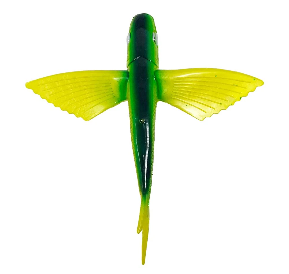 Made from a durable soft plastic material, the Buku Flying fish teasers are a great addition to the back of the boat. Off the shelf they’re unrigged, but they have a pre-made slit in the underside of the belly with an internal hole that connects it to the nose of the fish so they can be rigged in just about any way you desire.
