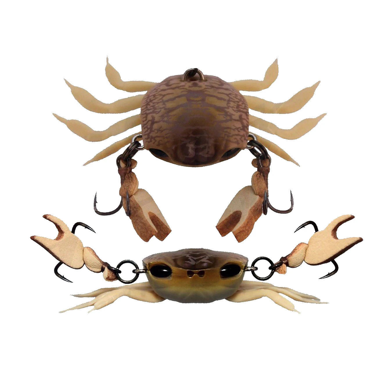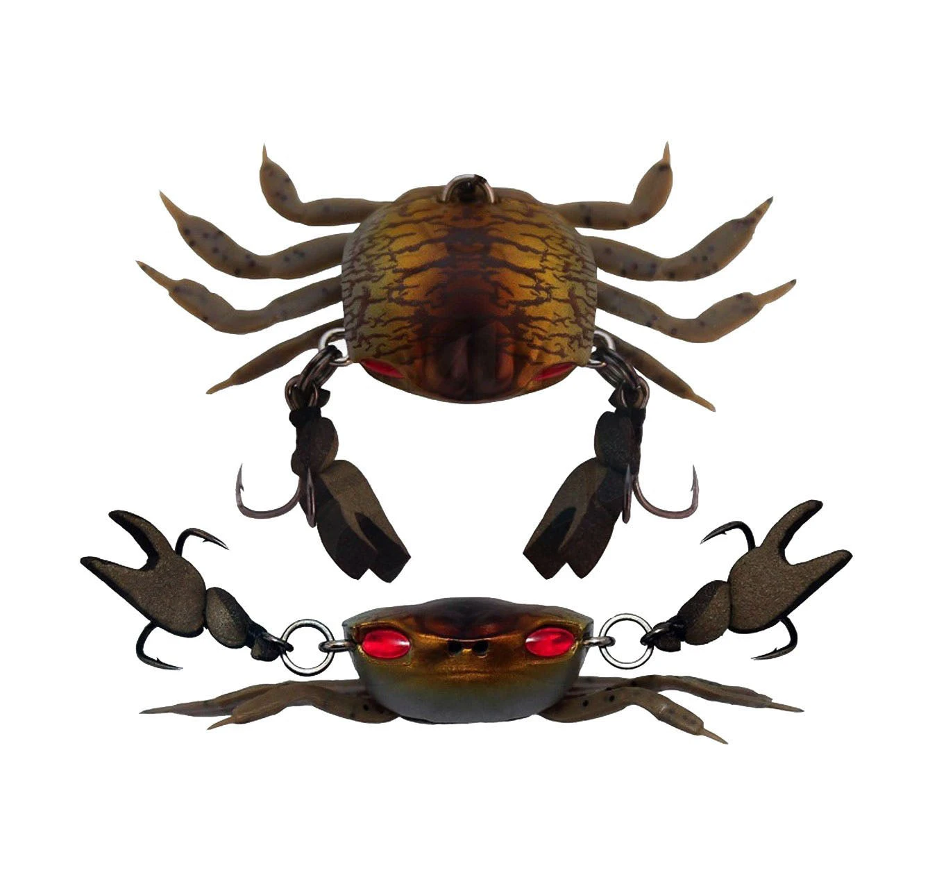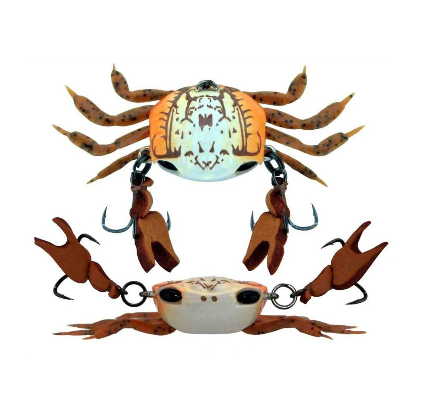 - Resilient and easily replaceable soft plastic legs and claws. Floating claw / Treble design gives the lure LIFE LIKE movement in the water.
