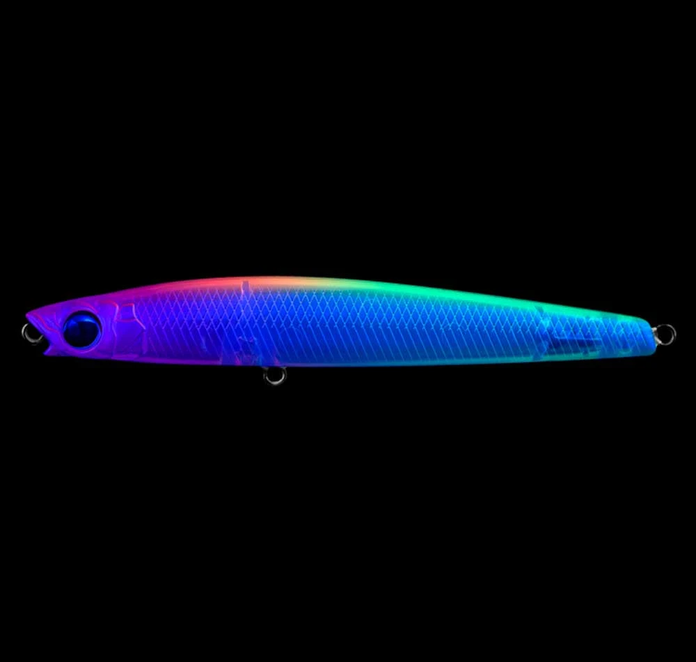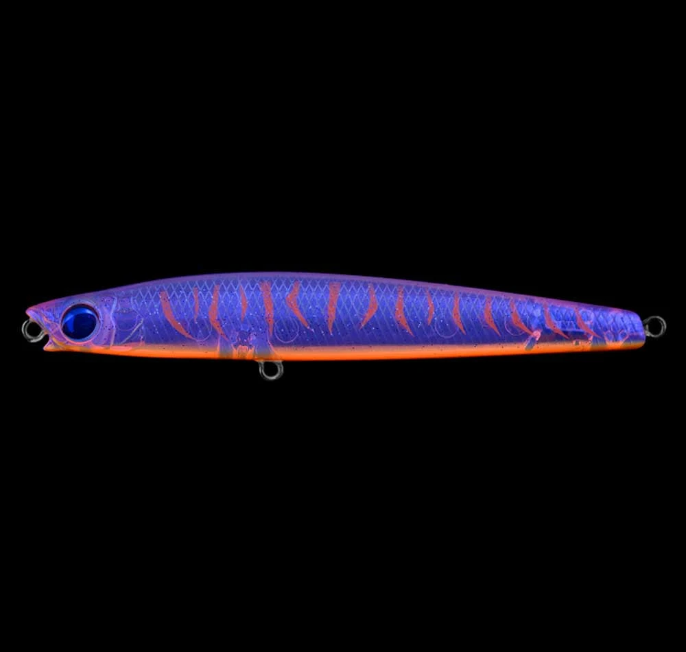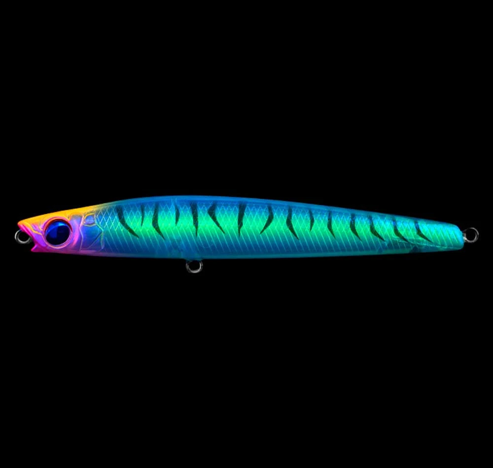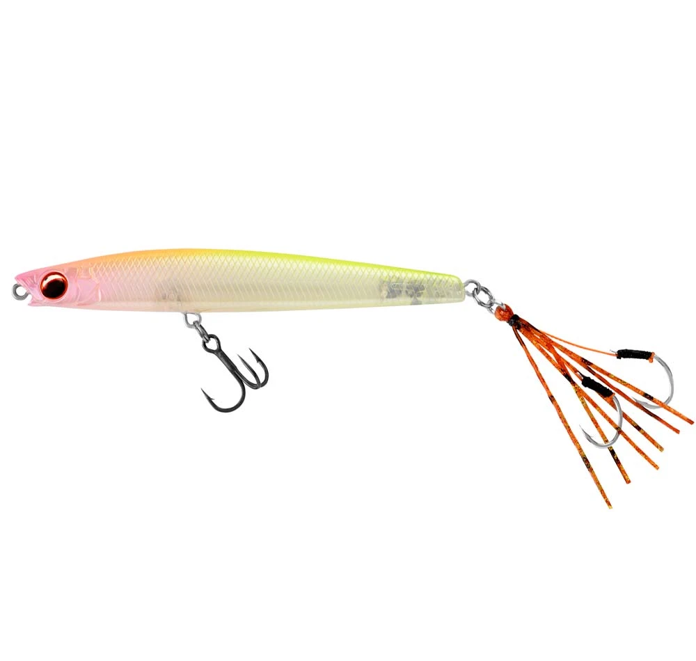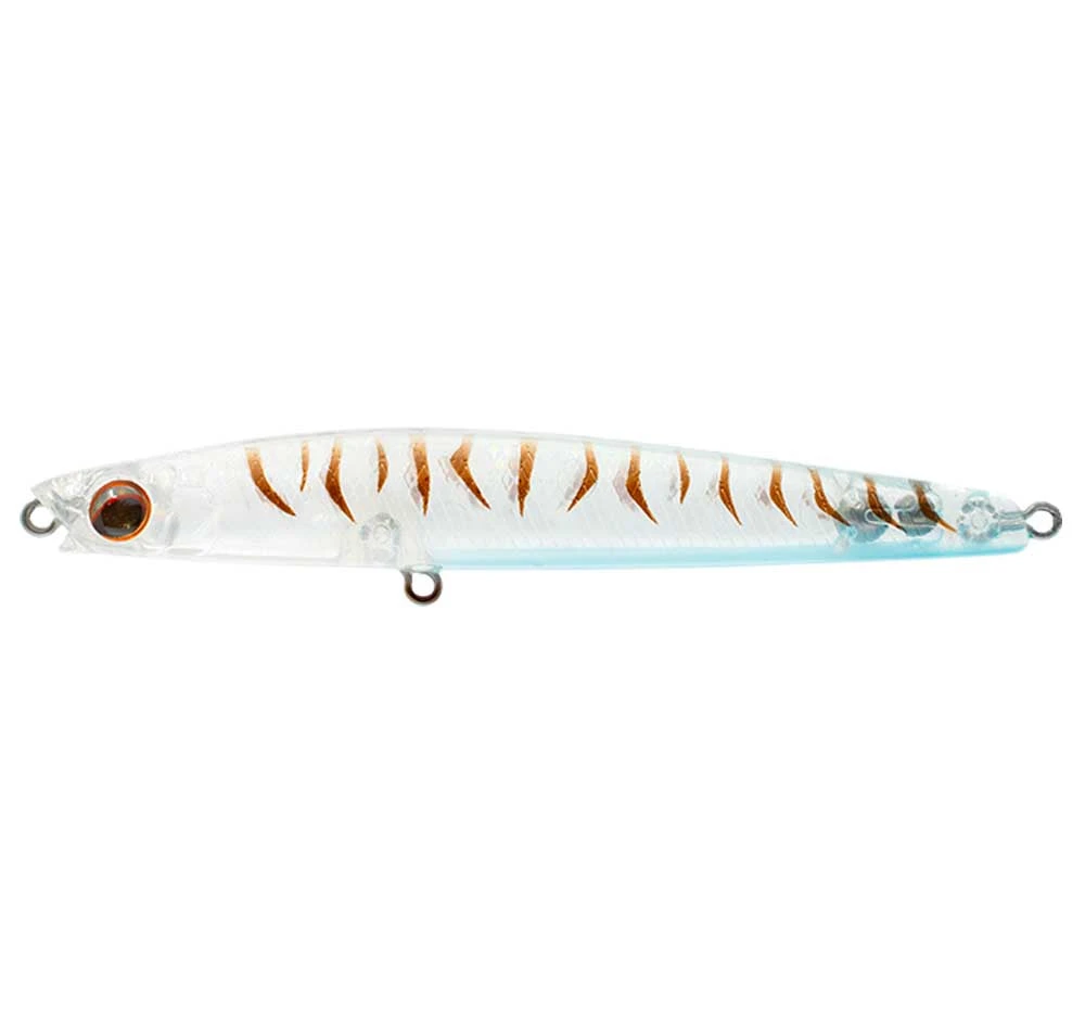 A topwater walk-the-dog lure, The Daiwa Infeet Slippery Dog Lure is the perfect fleeing prawn imitation. The TG Tune models now feature 2 small plastic rattle beads placed in the head of each lure, emulating the clicking sound of fleeing prawns on the surface.