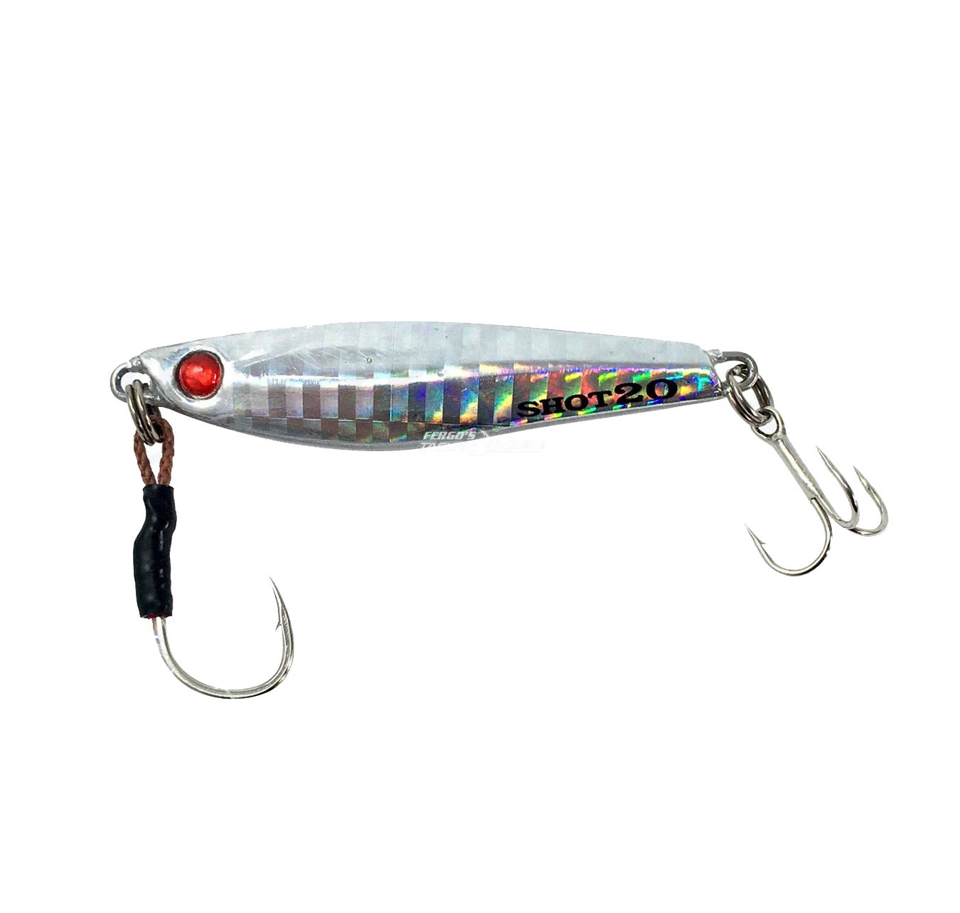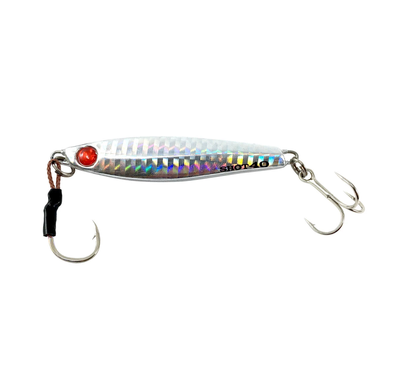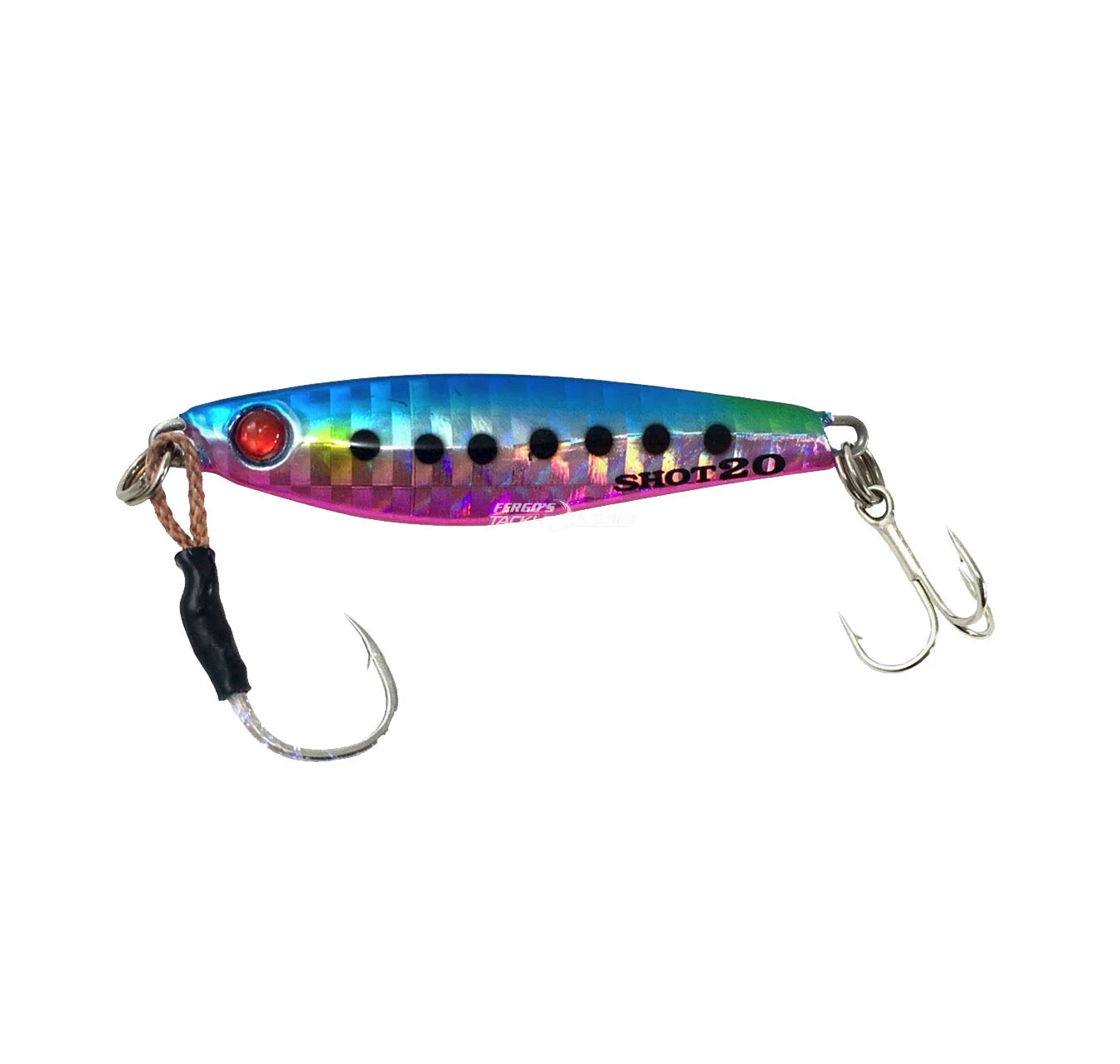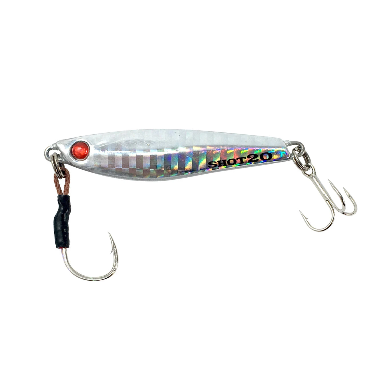 The Jack Eye Shot is a streamlined, slim profiled Lure that is designed specifically to be used with a jerking motion used for both offshore and Rockfish. This Lure is perfect due to its centre front weight giving it a unique side to side falling action and it darts beautifully when jigged. The Jack Eye is a great choice for anglers who are targetting any offshore and Land/Rock fishing.
