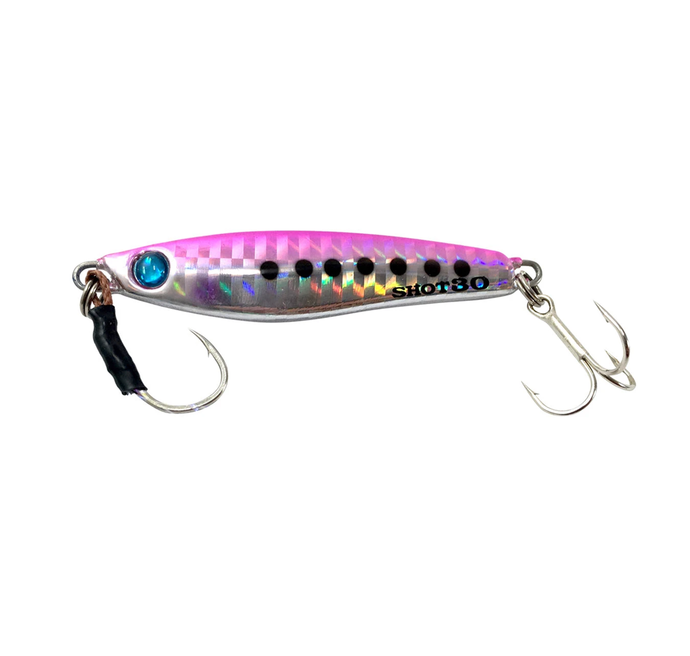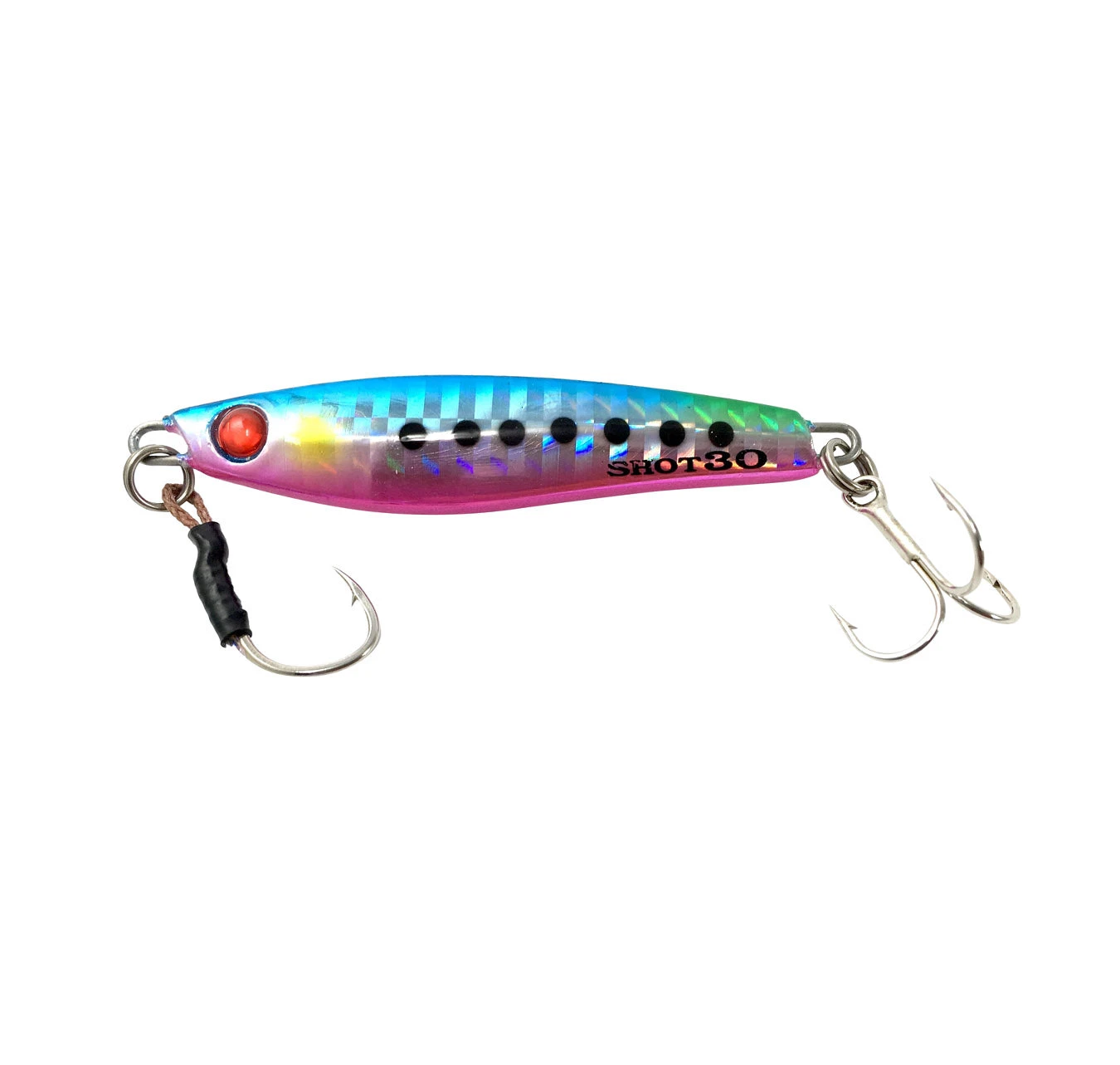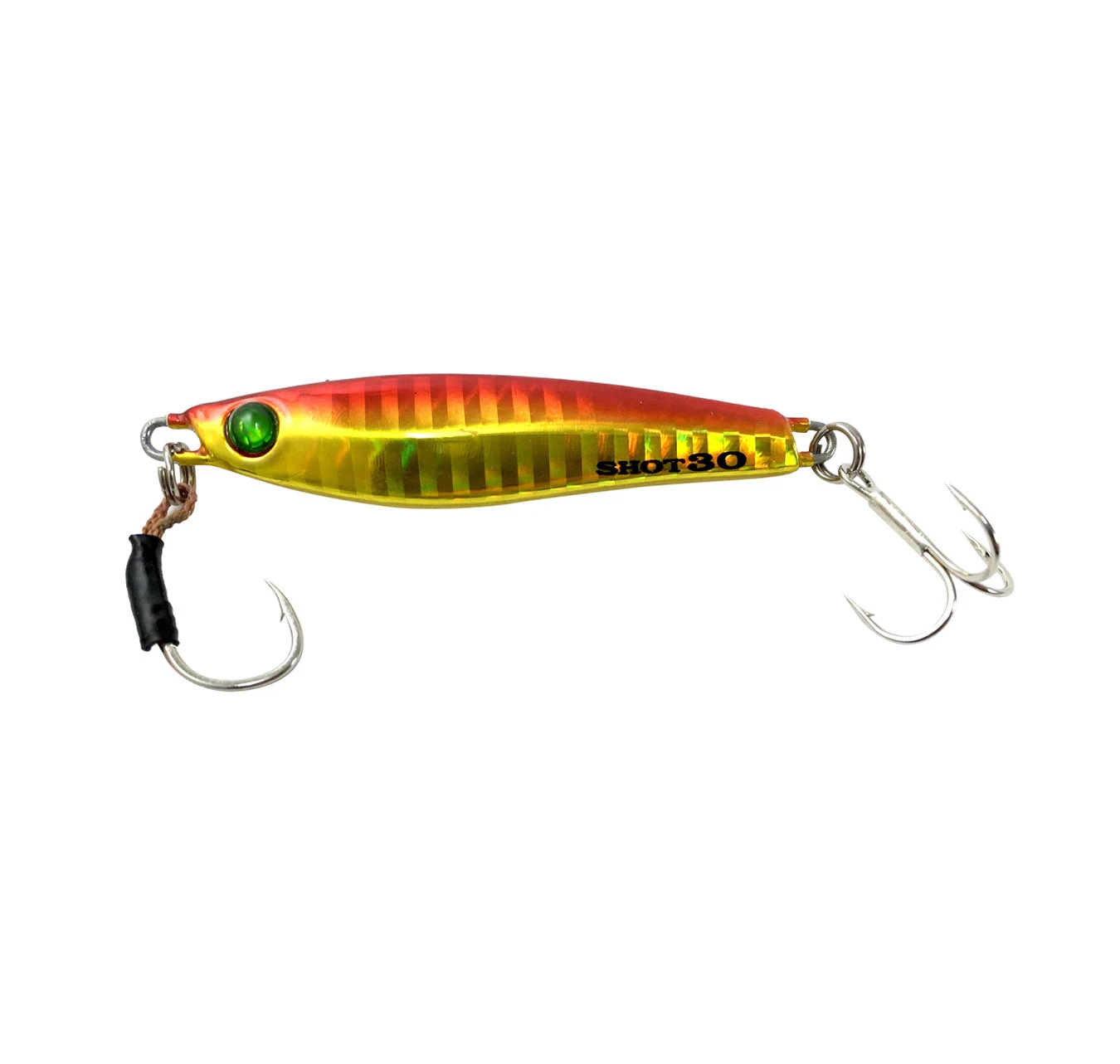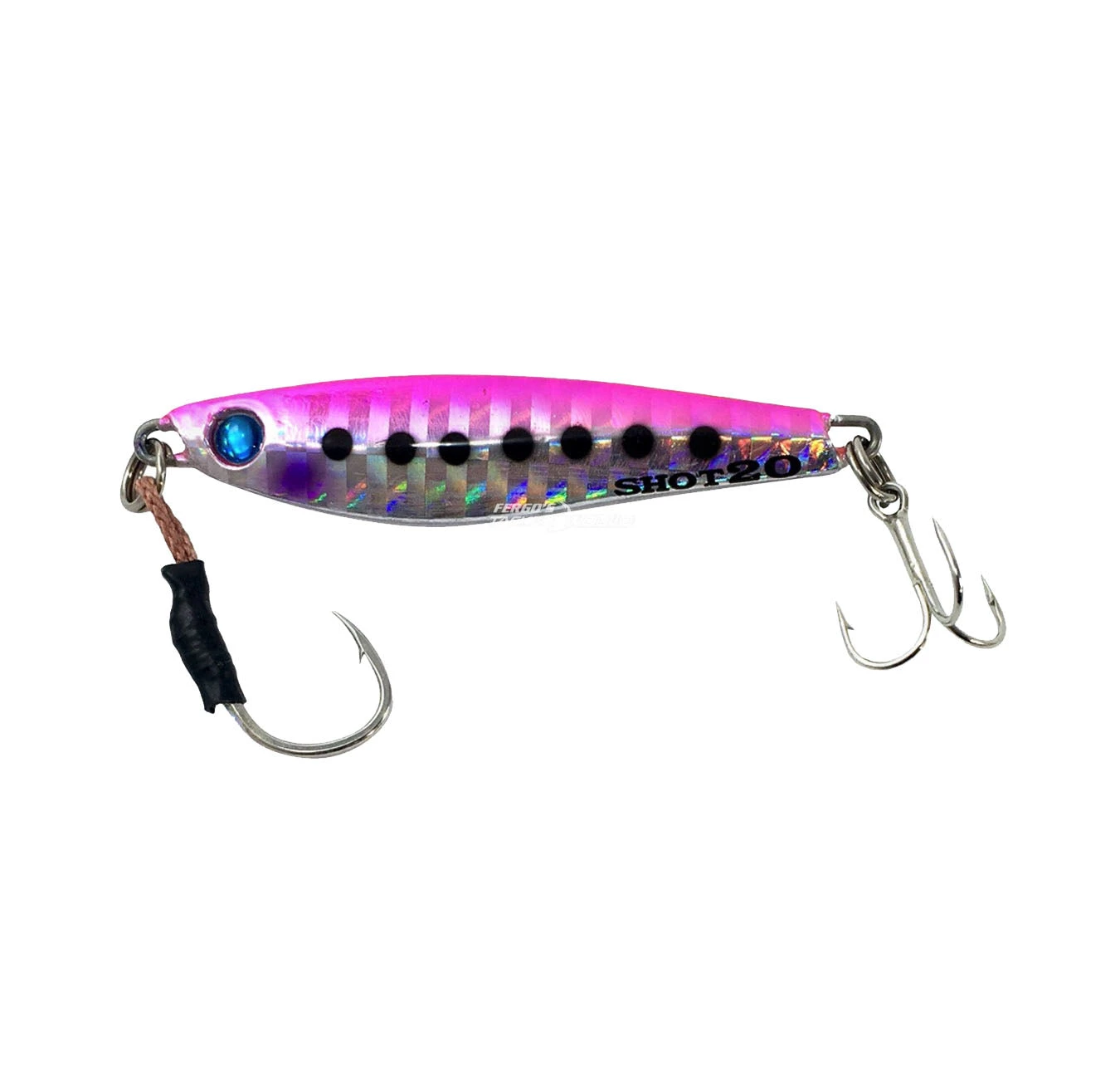 The Jack Eye Shot is a streamlined, slim profiled Lure that is designed specifically to be used with a jerking motion used for both offshore and Rockfish. This Lure is perfect due to its centre front weight giving it a unique side to side falling action and it darts beautifully when jigged. The Jack Eye is a great choice for anglers who are targetting any offshore and Land/Rock fishing.