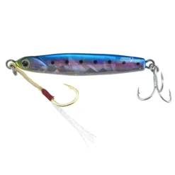 The fluttering style of this metal lure is created by placing the center of gravity slightly behind center. The reflective surface of these lures, along with it’s action is sure to excite the fish. This type of lure will appeal to predators from the moment of splashdown. It will continue to invite the fish right up to the moment of hook-up. To further increase your hook-up rate Jackson has added an assist hook, so you don’t miss a second chance. An ideal lure for dropping beside reefs for Snapper. You can even cast and retrieve for other larger species.
