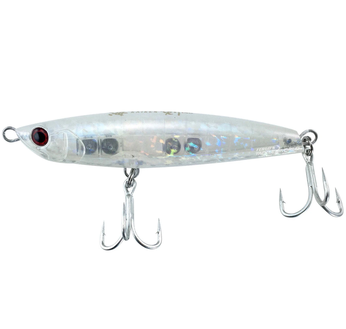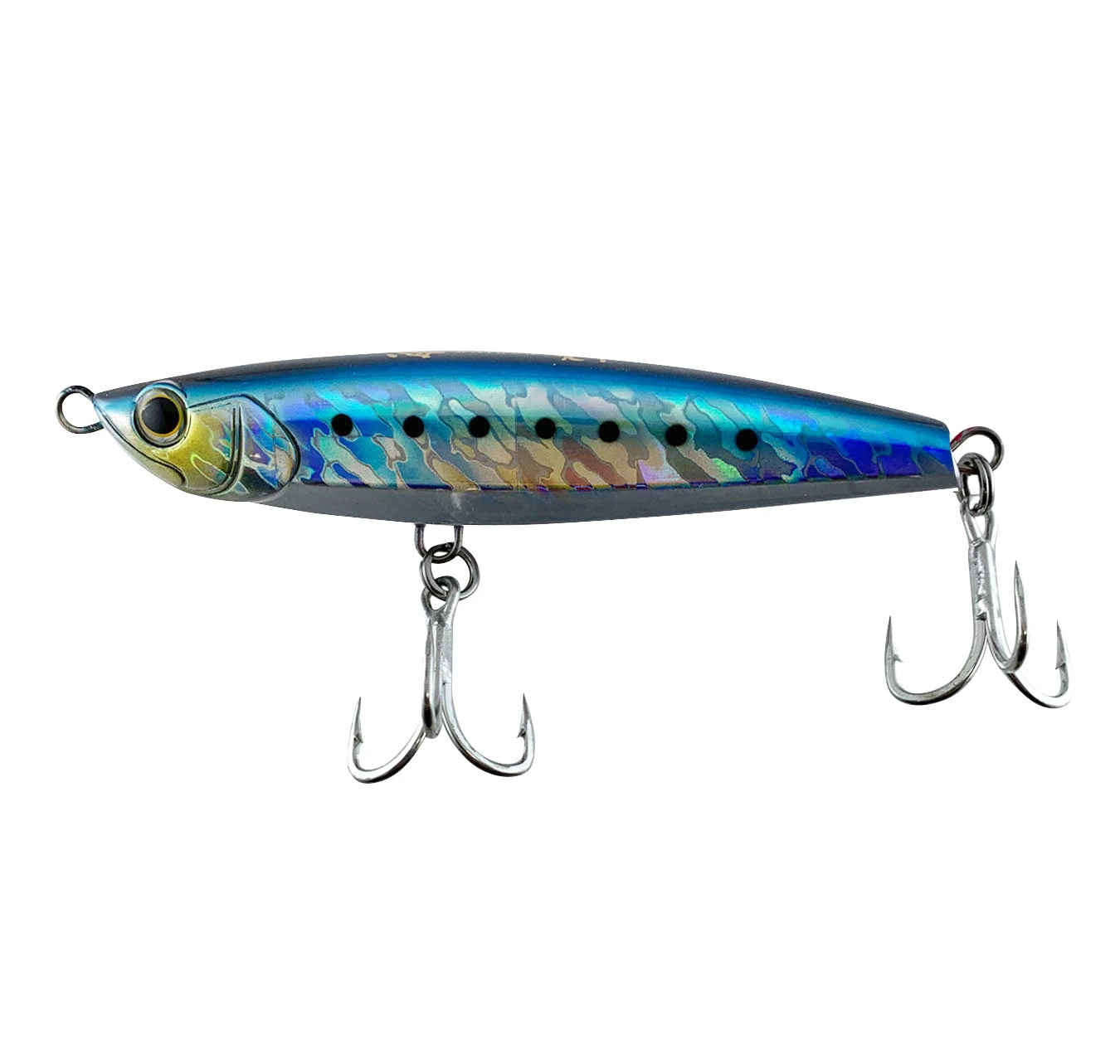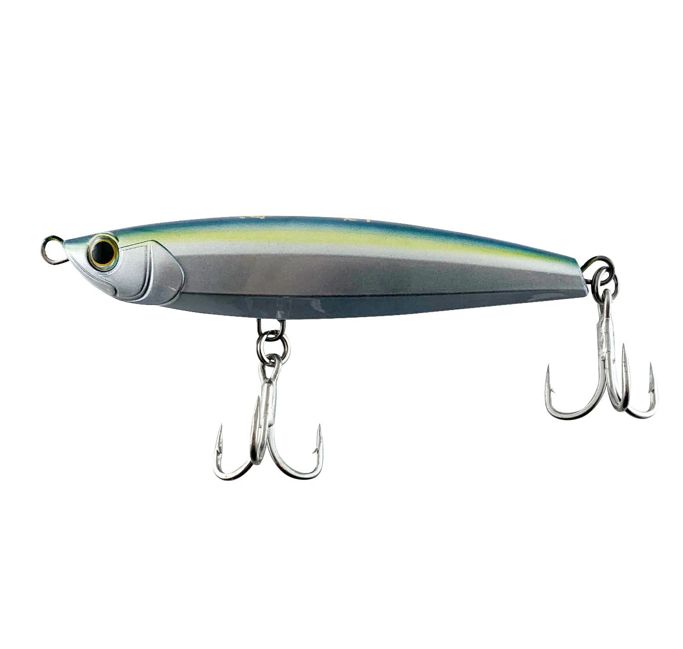 Constructed with a single strand of wire that runs through the bottom, the Kaiken lures are extremely strong and built to handle even the hardest fighting species like kingfish, tuna and spanish mackerel. Because of its low position in the lure, the wire keeps the Kaiken stick bait balanced and upright at all times.