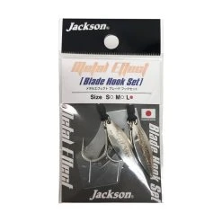 The Jackson Metal Effect Blade Assist Hook Set while being designed specifically for the Jackson Metal Effect Blade can be an easy and very effective addition to just about any casting metal or jig. It comes rigged with 2 split rings separated by a shrink wrapped swivel, a single casting hook and a knife shaped blade that gives off an intense flash when retrieved at any speed. Available in Small,Medium and Large, the Jackson Metal Effect Blade Assist Hook Set is versatile, easy to rig and super effective.