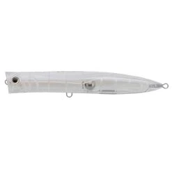 The Maria Duckdive is a slim long casting lure designed with a smaller cup, giving a more subtle action for those more tentative fish not after the heavy displacement that poppers with a larger cups provide. The action is a shallow dive just bellow the surface with nice frothy bubble trail that follows. It has a sliding bearing system that pushes weight to the tail when casting provide exceptional distance.