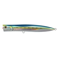 The Maria Duckdive is a slim long casting lure designed with a smaller cup, giving a more subtle action for those more tentative fish not after the heavy displacement that poppers with a larger cups provide. The action is a shallow dive just bellow the surface with nice frothy bubble trail that follows. It has a sliding bearing system that pushes weight to the tail when casting provide exceptional distance.