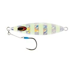 Classic teardrop shape, ideal for almost all jigging styles. Comes rigged with super strong Assist hook on head, ready to fish out of the packet. From fast and erratic for mid-water dwelling species like Kingfish. To a more slow and methodical slow-pitch style of jigging for bottom species. The wider body profile makes the jig flutter more on the drop and produces a wider thumping action on the lift.