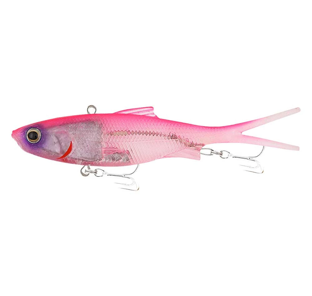 Samaki Vibelicious 70mm fork tail vibe perfectly mimics the tight shimmer of a baitfish, luring in a variety of predator species. Samaki Vibelicious is constructed of 10X strong super stretch material, new VMC 4X strong spark point hooks and premium Japanese wire not to mention its amazing colours and unique sizes. The Vibelicious Fork Tail is designed for speed, action and ultimate attraction whether fishing the estuaries, creek mouth, flats or drop offs, the Samaki Vibelicious will be the stealthiest lure in your tackle box. The Samaki Vibelicious is deadly on a huge range of fish. The 70mm fork tail range has been a proven vibe to work on bream, flathead, tailor, jewfish, and many more, is a must have vibe in the tackle box. Some of the most effective ways for working the Samaki vibe are a series of sharp lifts and small double hops. The killer action on these soft vibes seems to always entice the fish, even when the fishing is hard going.