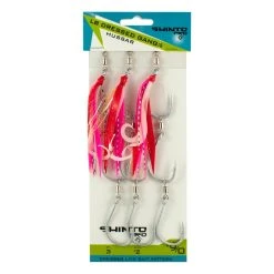 The Shinto Pro Dressed Ganged Hooks are designed to create movement in the slowest of currents, enticing even timid fish to bite. The addition of fresh bait to the already enticing colour and movement is a winning combination! Shinto Pro is proud to present the swivel linked dressed ganged hooks utilising the highest quality hooks and swivels. The swivel link solves the problem of the traditional and rigid eye-to-shank rigs. A more flexible and durable hook rig makes it significantly easier to attach baits. Additionally the flexibility created through the introduction of the swivels greatly increases hook up rates and reduces the likelihood of foul ups when fighting fishing. suitable for rock, reef and beach fishing. Perfect for slow trolling or drifting under a float for pelagics like Kingfish, Tuna and Mackerel.Â