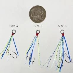 The bigger size 8 hooks are suited for bigger estuary lures and beach/rock lures as well. They’re also great for smaller offshore micro jigs.
