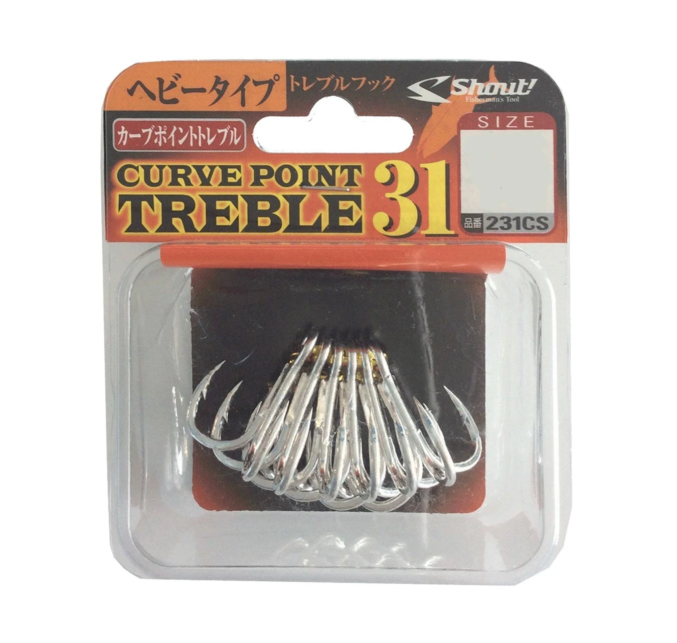 The Shout Curve Point 31 Treble is a heavy duty hook best suited to popping and stickbaiting for Kingfish, Tuna and GTs. The long curved point gives the hook excellent holding power and strength once rigged. Sold in a re-sealable pack, in pack quantities.