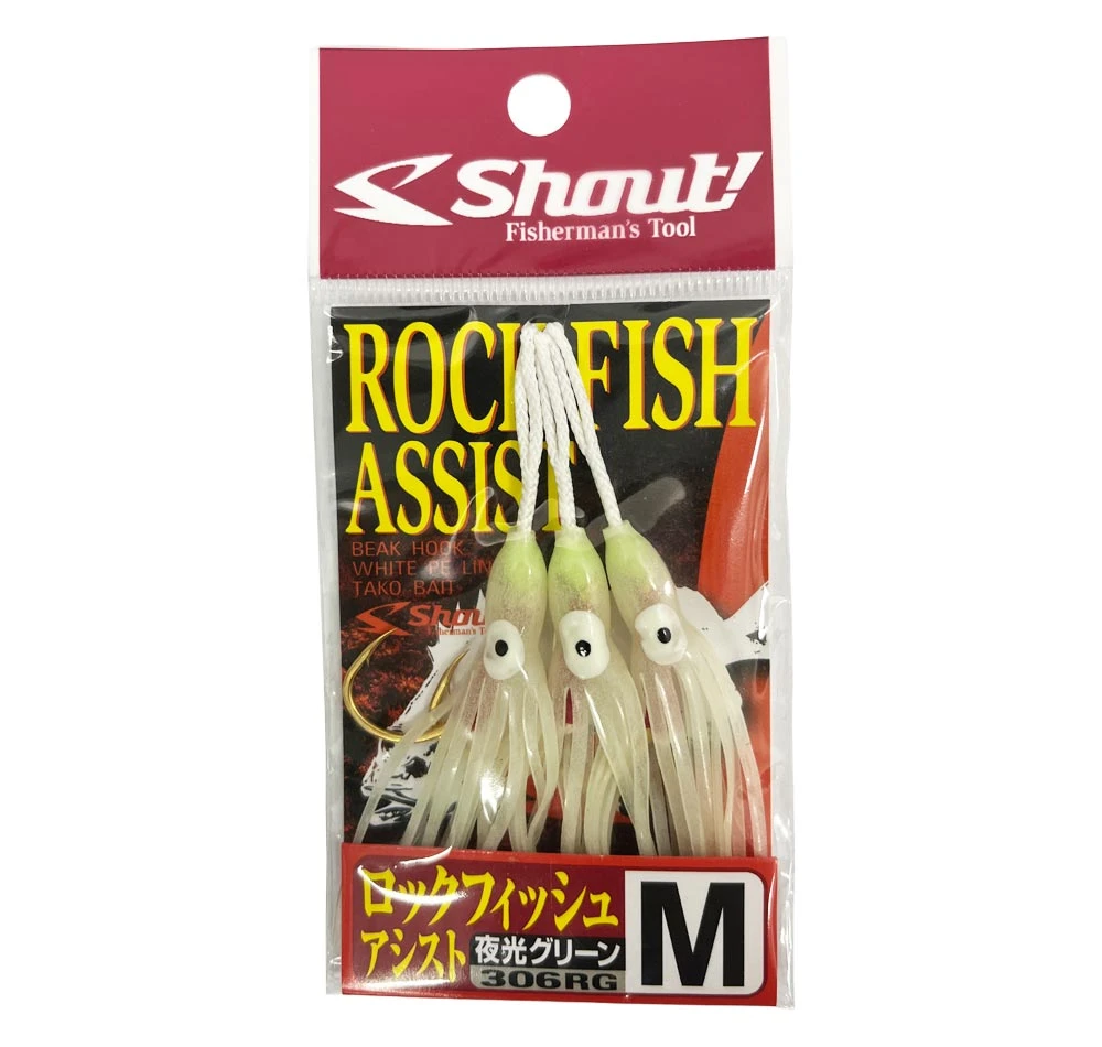 The Shout Rockfish Glow Assist Hook is a pre-rigged slow pitch jigging assist hook with occy skirt, ready to go! A soft lumo bead is contained perfectly under the occy skirt to minimise tearing and the skirt sliding down over the hook. Spliced white Shout PE Cord completes the rigging and this skirt is ready to attach straight to your jig or to a solid ring, either top or bottom as required. The occy skirt provides extra flash and attraction to your jig and can be the difference on slow days offshore jigging. This hook is also a great hook replacement for inchiku style jigs.