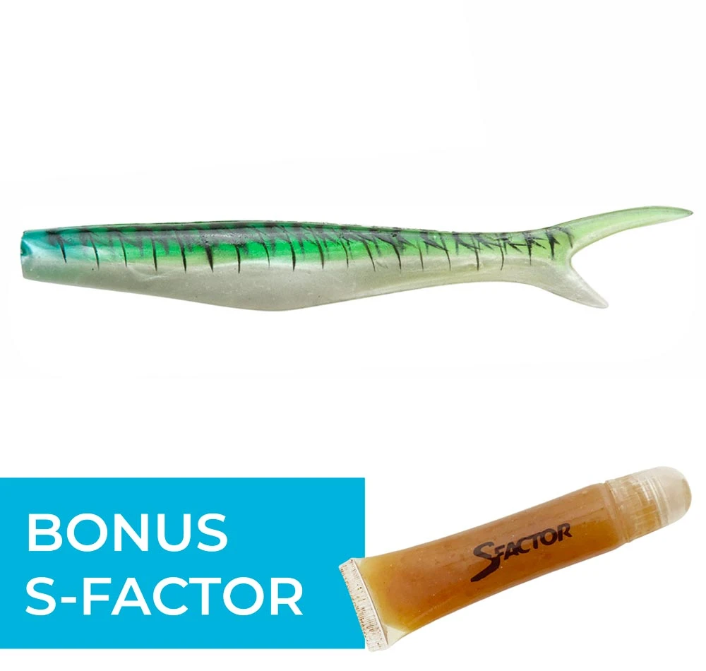 The Squidgies Pro Range Flick Bait Soft Plastics also come with a small tube of S-Factor Scent in each packet that can be rubbed on just about anything to enhance the bite and hold of fish.