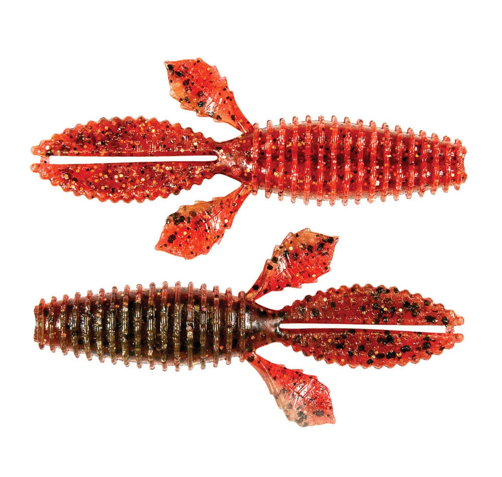 Some features of the ZMan TRD BugZ soft plastics include a hook pocket for easy and weedless rigging, two larger claws that flutter whilst moving through the water, and two offset smaller claws that do the same.